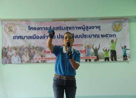 วันที่ 27 มกราคม 2563 ศูนย์บริการสาธารณสุข กองการแพทย์ เทศบาลเมืองลำพูน จัดอบรมตามโครงการส่งเสริมสุขภาพผู้สูงอายุเทศบาลเมืองลำพูน อบรมให้ความรู้เรื่อง “สูงอายุอย่างชาญฉลาดในการใช้สมุนไพร แพทย์ทางเลือก ควบคุม รักษาโรคเบาหวาน โรคความดันโลหิตสูงและภาวะไขมันในเลือดสูง” วิทยากรโดย อ.กิตติ กิติจารุวงค์ อดีตนายกสมาคมแพทย์แผนไทย จ.ลำพูน และช่วงบ่านอบรมเรื่อง”การเข้มแข็ง ใจแช่มชื่น และฝึกปฏิบัติการออกกำลังกายที่เหมาะสมกับผู้สูงอายุ” วิทยากรโดย อ.ระเบียบ รังแก้ว