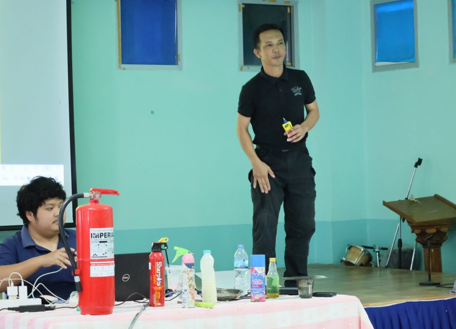 วิทยากรโดยนายศราวุฒิ กุลทรัพสิริ หัวหน้างานป้องกันและบรรเทาสาธารณภัยเทศบาลเมืองลำพูน และทีมงาน ณ ห้องประชุมอาคารคุณธรมม 36