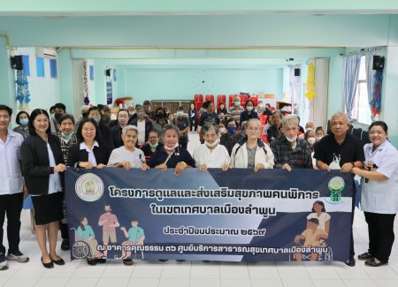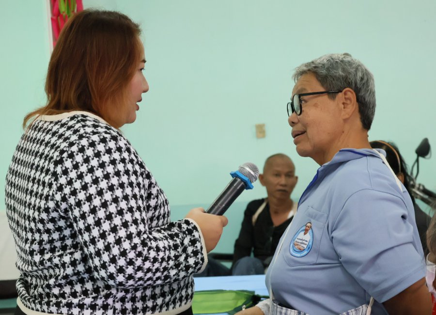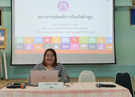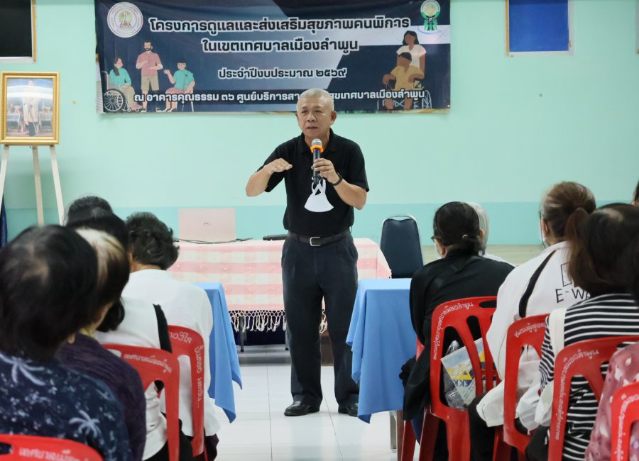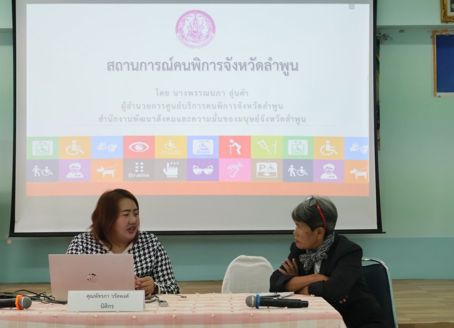 การบรรยายให้ความรู้เรื่อง สถานการณ์คนพิการจังหวัดลําพูน สิทธิสวัสดิการพื้นฐาน สำหรับคนพิการและผู้ดูแล วิทยากรโดยคุณพัชรภา วรัตพงศ์ ตำแหน่งนิติกร จากสำนักงานพัฒนาสังคมและความมั่นคงของมนุษย์จังหวัดลำพูน