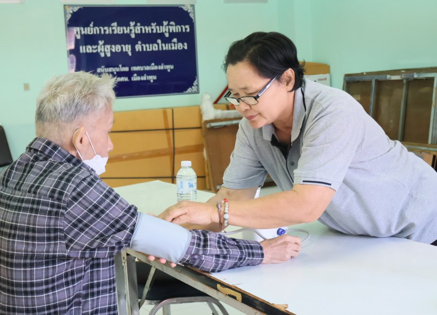 โดยมีนายสิริวุฒิ คำธิตา รองนายกเทศมนตรีเมืองลำพูนร่วมพบปะพูดคุยกับสมาชิกชมรมฯ กิจกรรมมีดังนี้ การตรวจสุขภาพเบื้องต้น กิจกรรมให้ความรู้ และการฝึกปฏิบัติ ออกกำลังกายในผู้สูงอายุด้วย "ยางยืด พิชิตสุขภาพ " วิทยากรโดยงานส่งเสริมสนับสนุนการแพทย์แผนไทย คลินิกแพทย์แผนไทยประยุกต์ ศูนย์บริการสาธารณสุขเทศบาลเมืองลำพูน