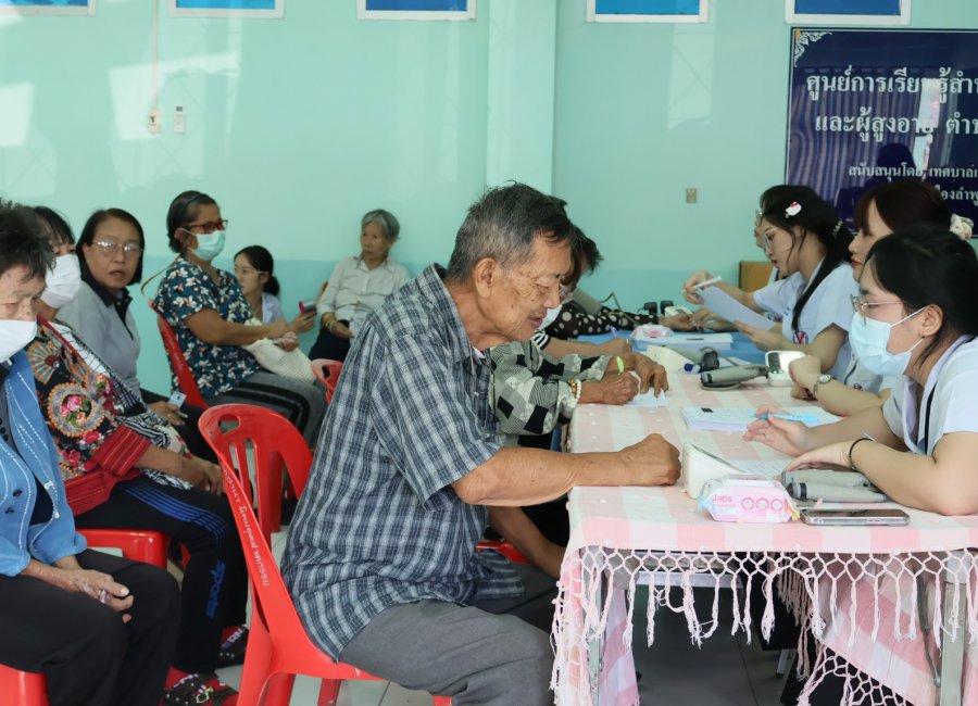 ผู้สูงอายุเทศบาลเมืองลำพูน โดยคณะเทคนิคการแพทย์ นำโดย ผศ.ดร.ศิริพันธุ์ คงสวัสดิ์ ผู้ช่วยคณบดี อาจารย์และนักศึกษาจากภาควิชากายภาพบำบัด