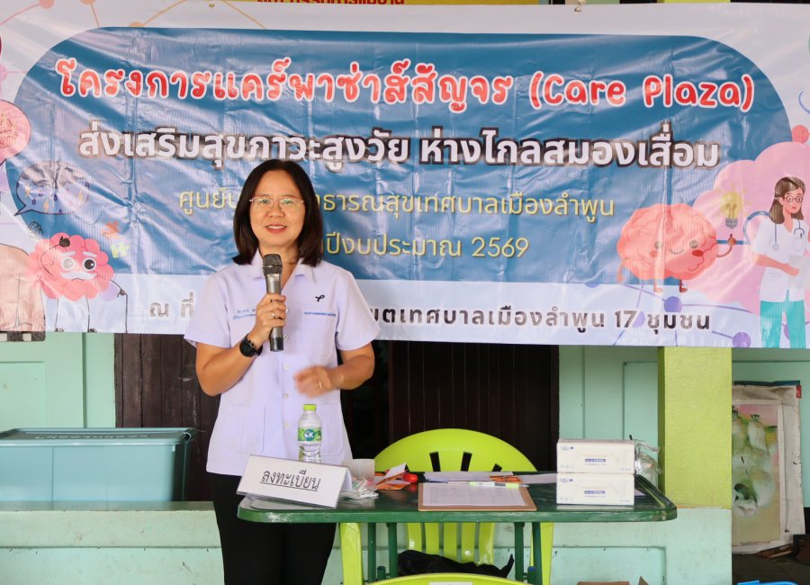 วันที่ 14 มกราคม 2569 นายสิริวุฒิ คำธิตา รองนายกเทศมนตรีเมืองลำพูนเป็นประธานเปิดโครงการ “แคร์พาซ่าส์สัญจร (Care Plaza) ส่งเสริมสุขภาวะสูงวัย ห่างไกลสมองเสื่อม ณ ชุมชนบ้านหลวย เพื่อขับเคลื่อนการดูแลสุขภาพเชิงรุกให้แก่ผู้สูงอายุในพื้นที่