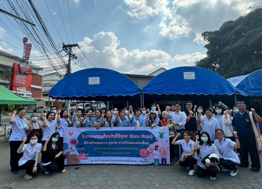 วันที่ 9 กุมภาพันธ์ 2569 นายประภัสร์ ภู่เจริญ นายกเทศมนตรีเมืองลำพูนเป็นประธานเปิดโครงการ “แคร์พาซ่าส์สัญจร (Care Plaza) ส่งเสริมสุขภาวะสูงวัย ห่างไกลสมองเสื่อม ณ ชุมชนจามเทวีเพื่อขับเคลื่อนการดูแลสุขภาพเชิงรุกให้แก่ผู้สูงอายุในพื้นที่
